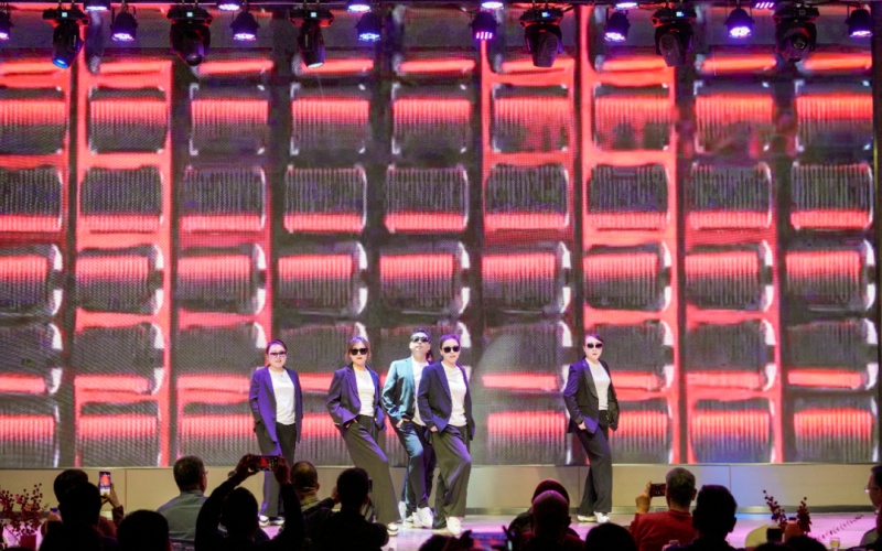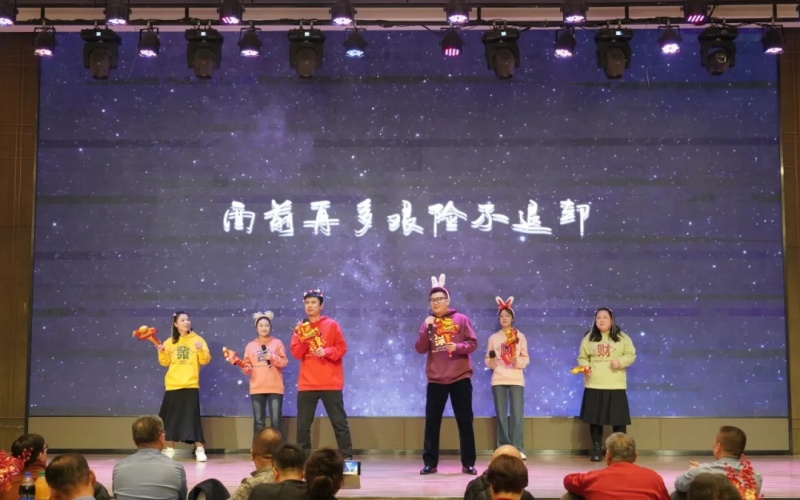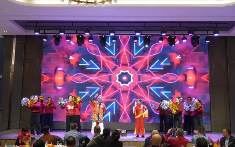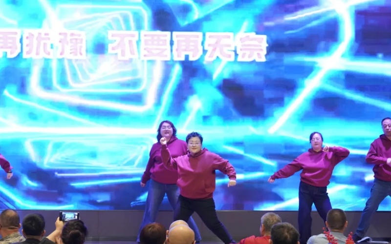 视频之间,同事们精心准备的节目接连上演。有活力四射的舞蹈,也有深情投入的演唱,还有振奋人心的朗诵。这些表演不仅展现了大家的才艺,更让整场晚会的氛围更加热烈。台上演得投入,台下看得投入,掌声和欢呼声此起彼伏,将现场气氛一次次推向高潮。